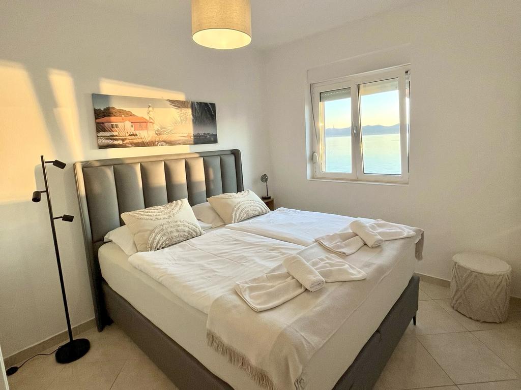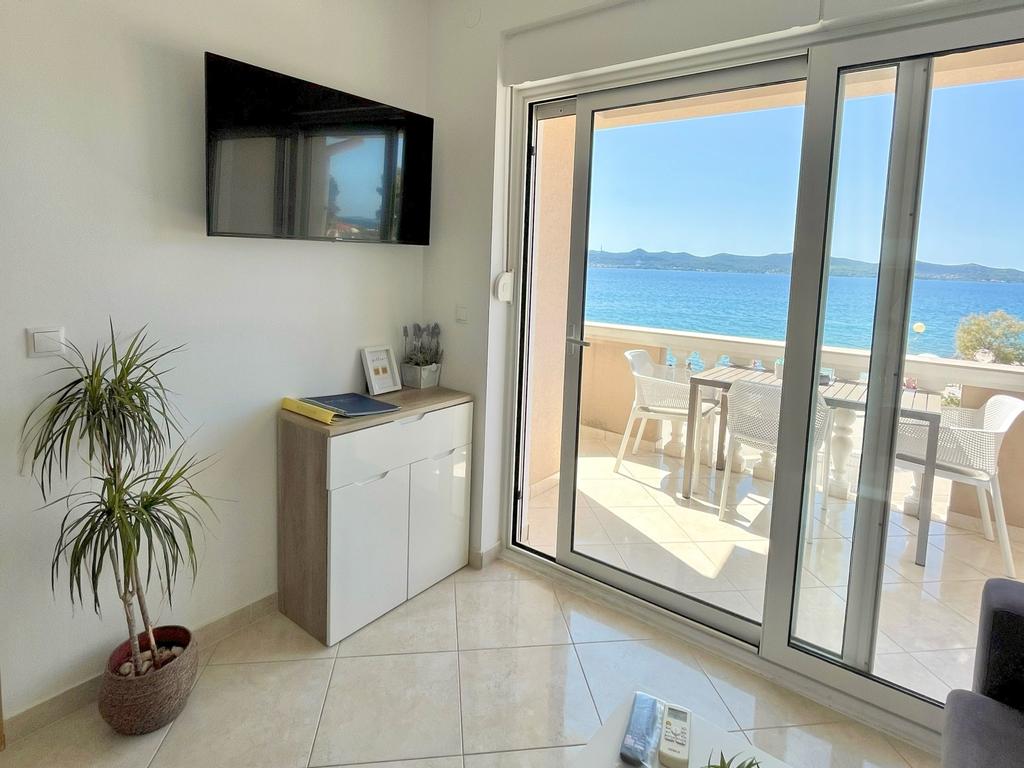 The vacation apartment is located in Villa Punta right by the sea in Zadar – just 5 meters from the beach. The crystal-clear water invites you to take a dip at any time, while at the same time you can enjoy a